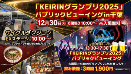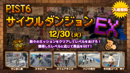 イベントスケジュールSCHEDULE 2025 12.28 Sun ツール・ド・PIST6 イベント 12:00~13:00入場無料 2025 12.29 Mon HOT OVAL sfiDARE 多目的利用 終日 2025 12.30 Tue PIST6サイクルダンジョン EXステージ イベント 10:00~16:00入場無料 2025 12.30 Tue KEIRINグランプリ2025 パブリックビューイングin千葉JPFドーム イベント 10:00~入場無料 2025 12.31 Wed 休館日 休館日 2026 01.01 Thu 休館日 休館日 2026 01.02 Fri 休館日 休館日 2026 01.03 Sat 休館日 休館日 2026 01.04 Sun 団体走路利用日(空) 団体走路利用日(空) 15:30~18:30残り2枠 2026 01.04 Sun 団体走路利用日(空) 団体走路利用日(空) 12:30~15:30残り2枠 MORE SCHEDULE お知らせINFORMATION 2025.12.25 競輪選手向け 全国走路開放(2026年1月分)スケジュールを更新しました 2025.12.21 1月PIST6サイクルクラブ開催のお知らせ 2025.12.17 休館日のお知らせ 2025.12.02 競輪選手向け 全国走路開放(2025年12月分)スケジュールを更新しました 2025.12.01 高校生走路利用(2026年1月分)の予約受付を開始しました