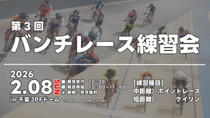 イベントスケジュールSCHEDULE 2026 02.03 Tue 団体走路利用日(空) 団体走路利用日(空) 16:30~19:30残り3枠 2026 02.03 Tue 団体走路利用日(空) 団体走路利用日(空) 12:30~15:30残り3枠 2026 02.04 Wed 団体走路利用(申込締切) 団体走路利用 18:30~21:30申し込みを締め切りました 2026 02.04 Wed 団体走路利用日(空) 団体走路利用日(空) 15:30~18:30残り3枠 2026 02.04 Wed 団体走路利用日(空) 団体走路利用日(空) 12:30~15:30残り3枠 2026 02.05 Thu 団体走路利用日(空) 団体走路利用日(空) 15:30~18:30残り3枠 2026 02.05 Thu 団体走路利用日(空) 団体走路利用日(空) 12:30~15:30残り3枠 2026 02.06 Fri 多目的利用 多目的利用 13:00~18:30 2026 02.07 Sat 施設多目的利用 多目的利用 終日 2026 02.08 Sun 【自転車競技】第3回バンチレース練習会 イベント 13:00~17:00観戦・見学無料 MORE SCHEDULE お知らせINFORMATION 2026.02.01 高校生走路利用(2026年3月分)の予約受付を開始しました 2026.02.01 大学・一般団体 走路利用(2026年3月分)の予約受付を開始しました 2026.02.01 イベント(2026年2月)情報を更新しました 2026.01.23 競輪選手向け 全国走路開放(2026年2月分)スケジュールを更新しました 2026.01.04 高校生走路利用(2026年2月分)の予約受付を開始しました