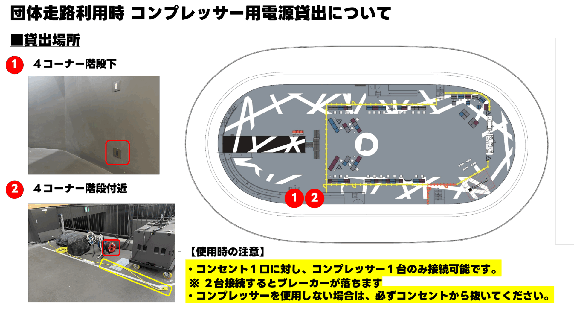 団体走路利用における「コンプレッサー用電源の貸出」について